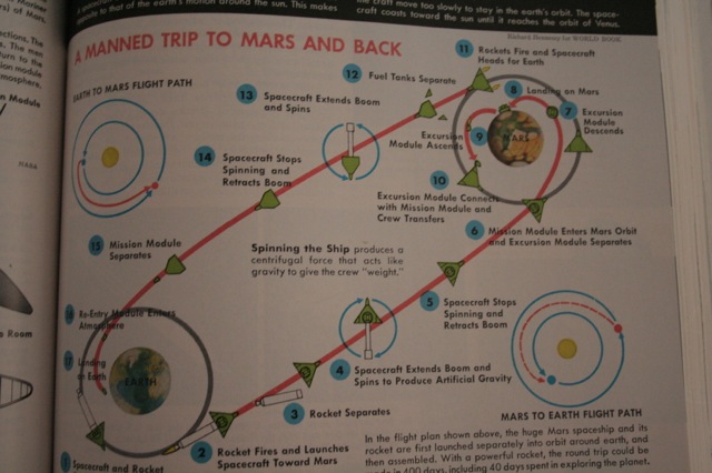 An example of the expectation gap: the 1977 World Book Encyclopedia entry on space travel shows a detailed plan for a trip to Mars. Reading the fine print, it turns out Wernher von Braun, the Father of Rocket Science, actually contributed to the entry. Back in 1977 the presumption around human space travel was simple: after the Moon, then comes Mars.